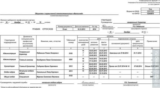 График отпусков должен быть подписан начальником кадровой службы и утвержден руководителем.